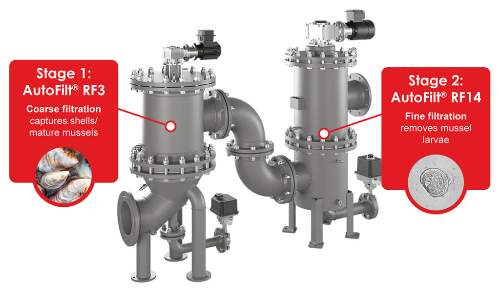 This dual-stage configuration combines two powerful AutoFilt® units that tackle invading mussels in every life stage: